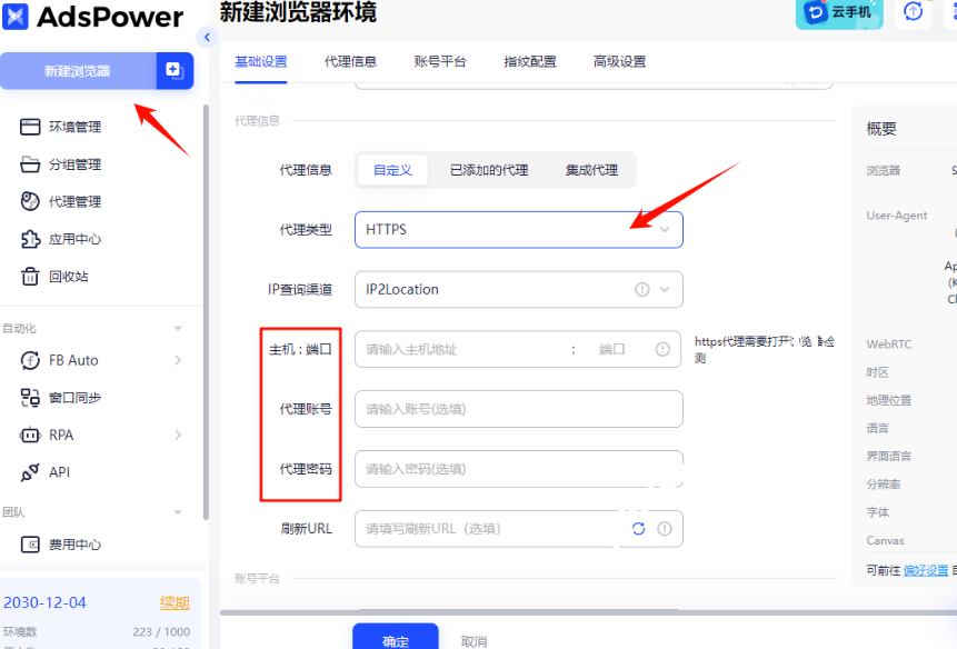 如下图所示:在AdsPower中新建浏览器环境,填上已购买的IP地址/端口/账密/开启时区和语言基于IP,然后启动浏览器环境进行注册即可。