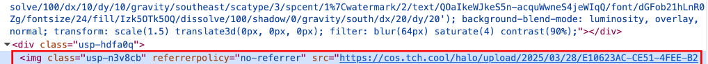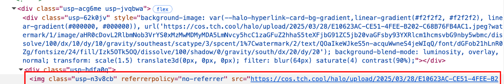referrerpolicy是一个控制浏览器发送请求时如何携带Referer头的属性。具体来说,当referrerpolicy="no-referrer"时,浏览器会完全禁止发送Referer头部,这就意味着当链接卡片加载图片时,浏览器不会将当前页面的地址(即Referer)传递给目标服务器。而在我的情况下,目标服务器对象存储COS。