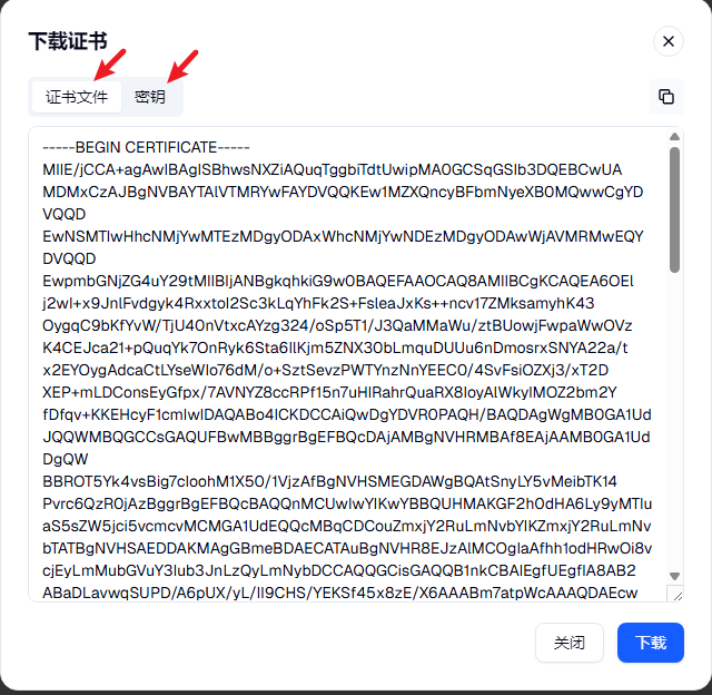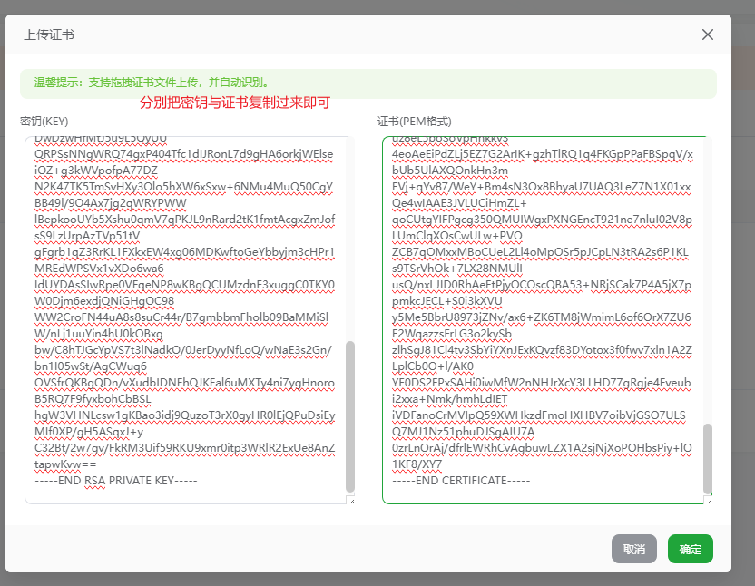 把前面申请好的证书信息,分别复制/粘贴过来即可: