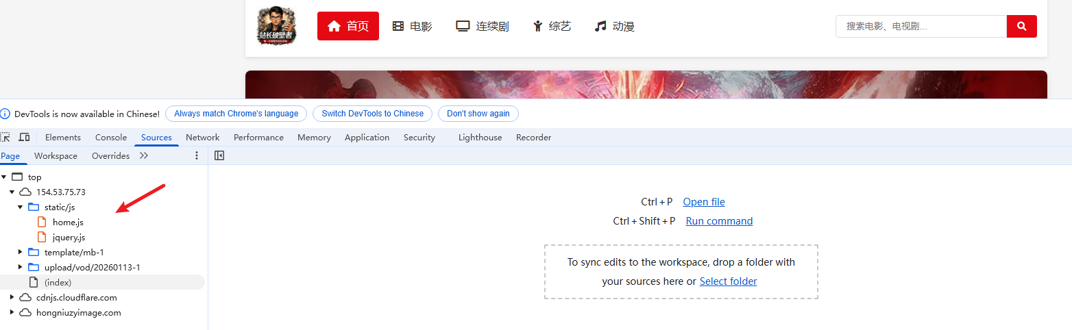 打开浏览器控制台,发现并未加载轮播图的js文件: