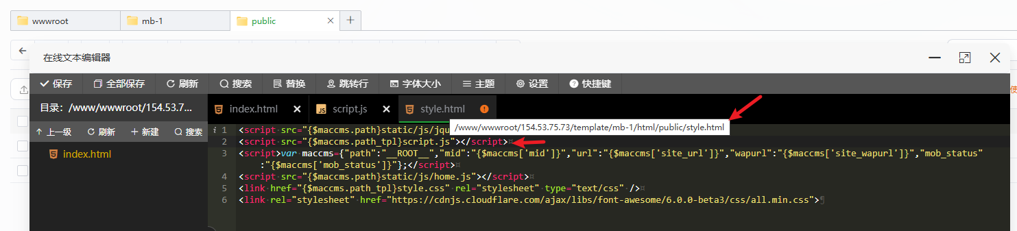 当知道问题出在什么地方,解决就非常简单了,通过查看源码,发现js文件都在这里设置的,那么只需要把script.js路径加上即可: