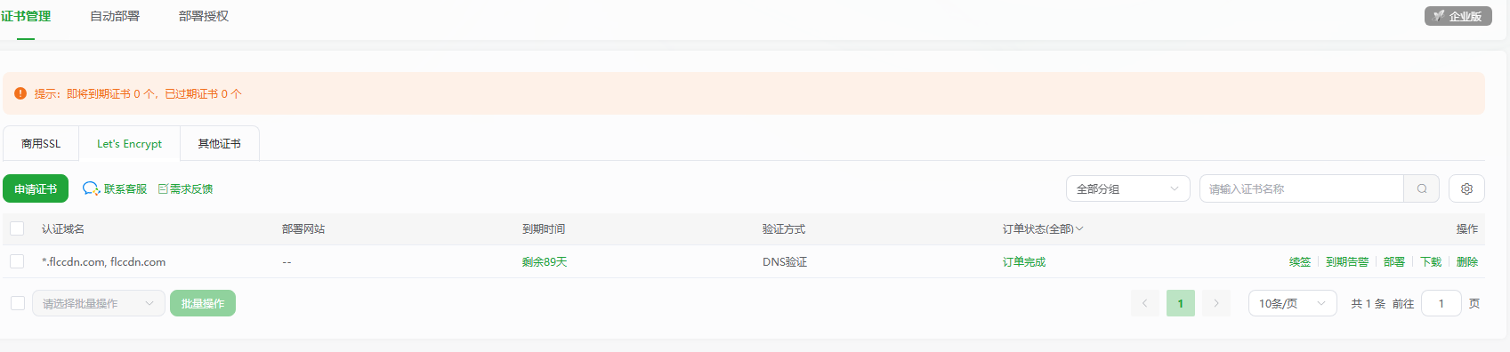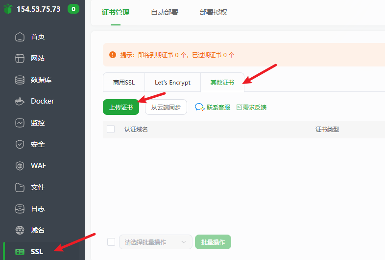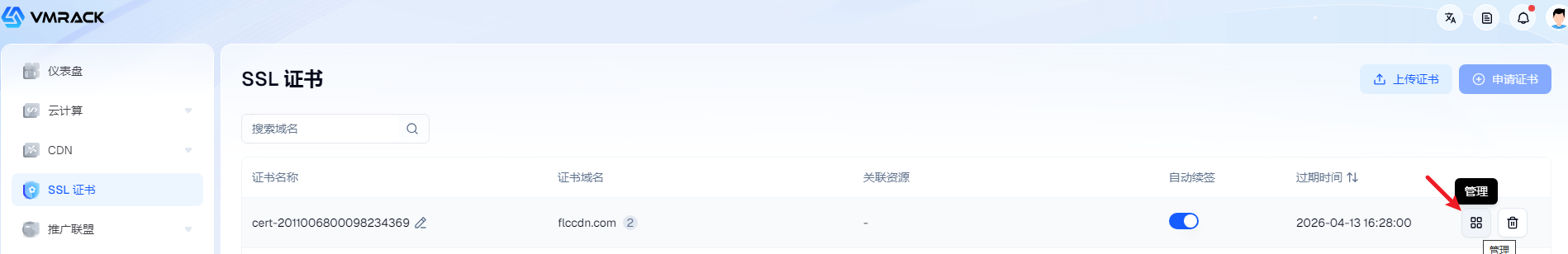 登录VMRack控制台,进入SSL证书页面,在右上角点击申请证书: