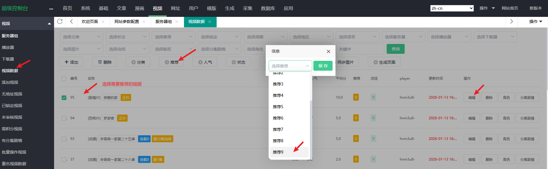 设置封面非常简单,只需要把视频推荐设置为推荐9即可: