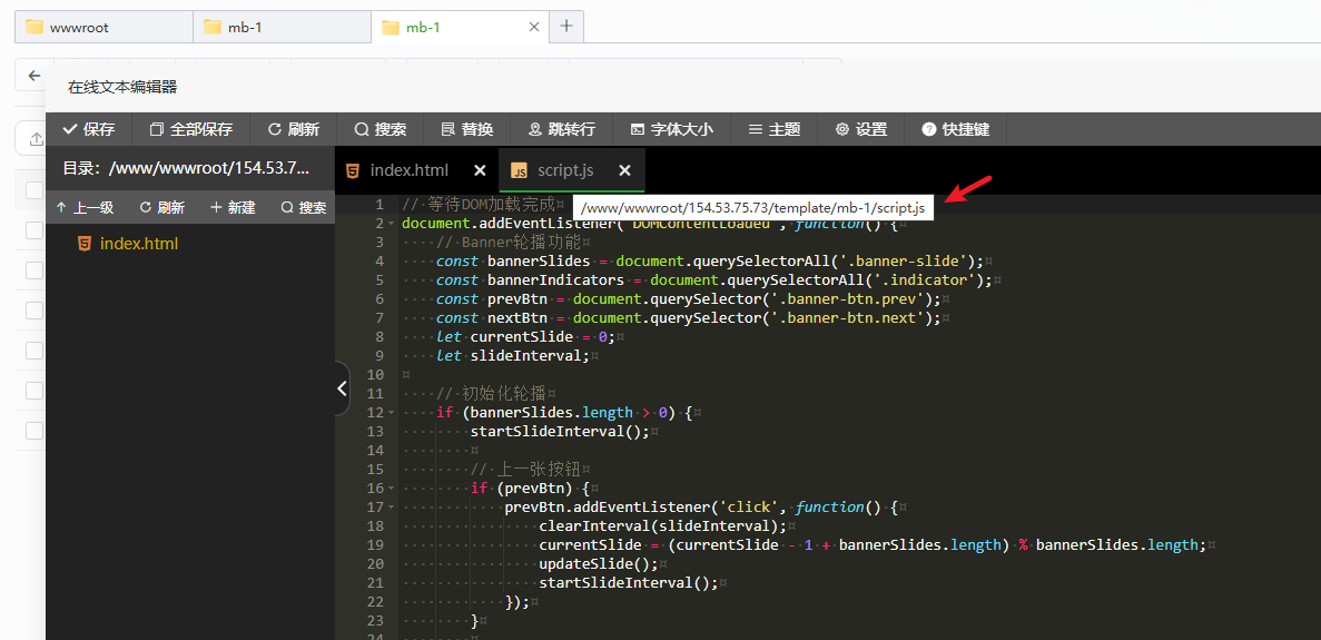 查看模板源码,发现轮播图功能源码在script.js文件实现:
