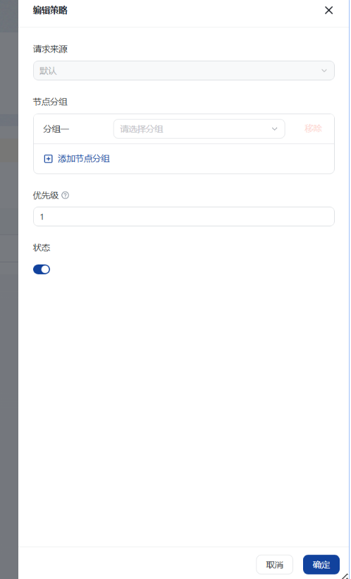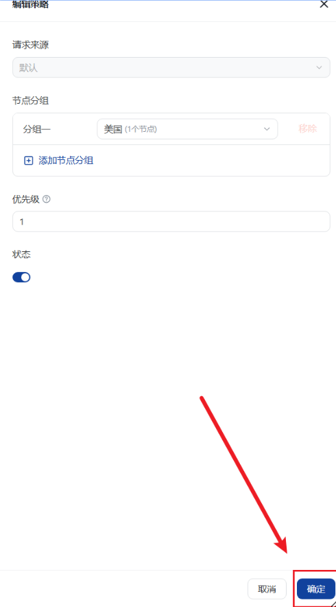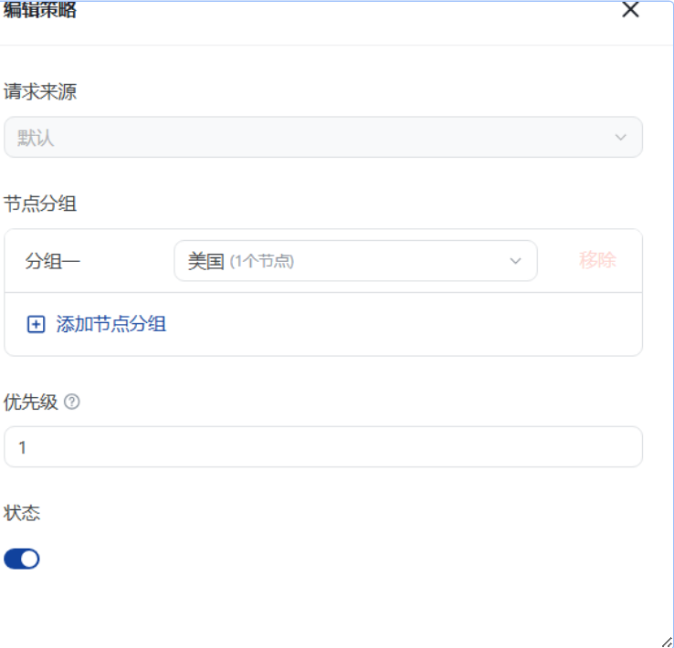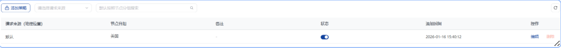 6、节点分组根据你的需求选择,根据你的需求可以选择边缘组或者上游组。为了负载均衡你也可以添加对各节点分组。冲突仲裁机制。当一个用户请求同时匹配多条策略时(例如同时匹配“美国”和“英国”),系统优先执行数值较小的策略。博主这边只设置了一个边缘分组就只配置一个。如下图: