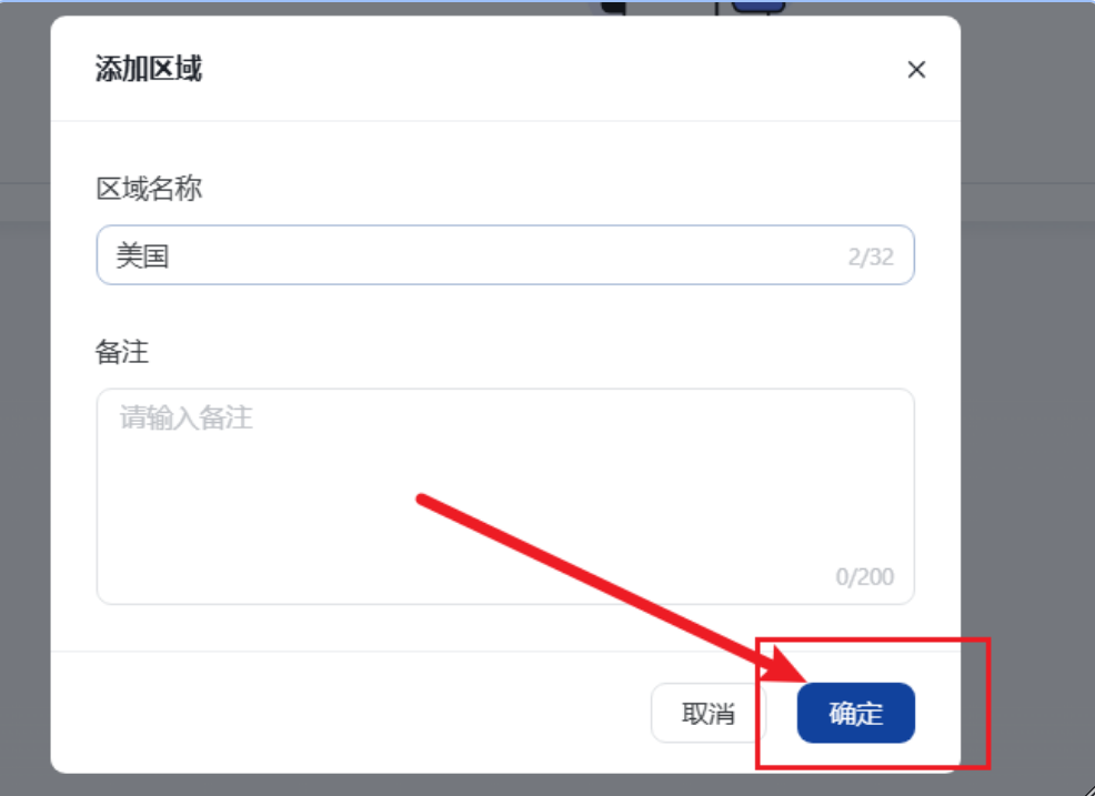 3、区域名称可以根据自己的喜好设置,然后点击确认就可以了。如下图: