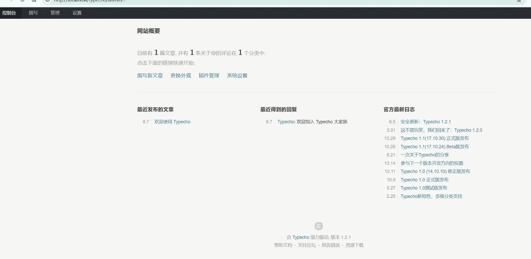 http://您的公网IP直接访问您的网站登录Typecho后台,将站点地址更新为您的公网IP地址(参见3.4节)