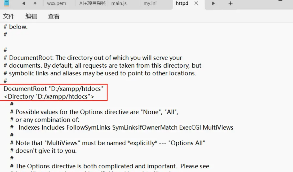 D:\xampp\apache\conf\httpd.conf使用文本编辑器打开