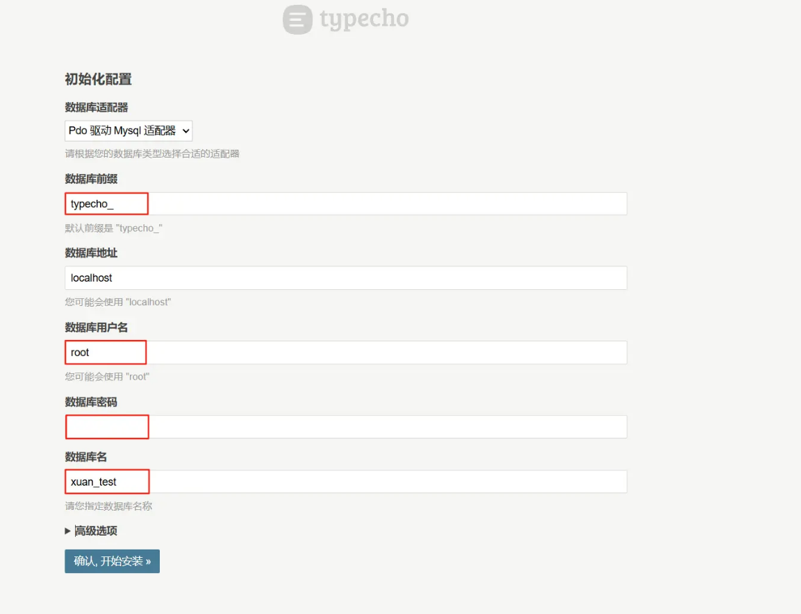 Typecho 需要一个 MySQL 数据库来存储内容和配置信息: