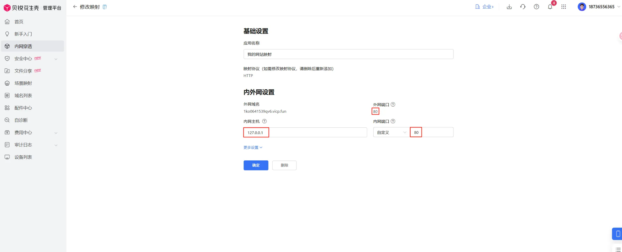 HTTP或网站外网域名: 使用花生壳提供的免费域名(如